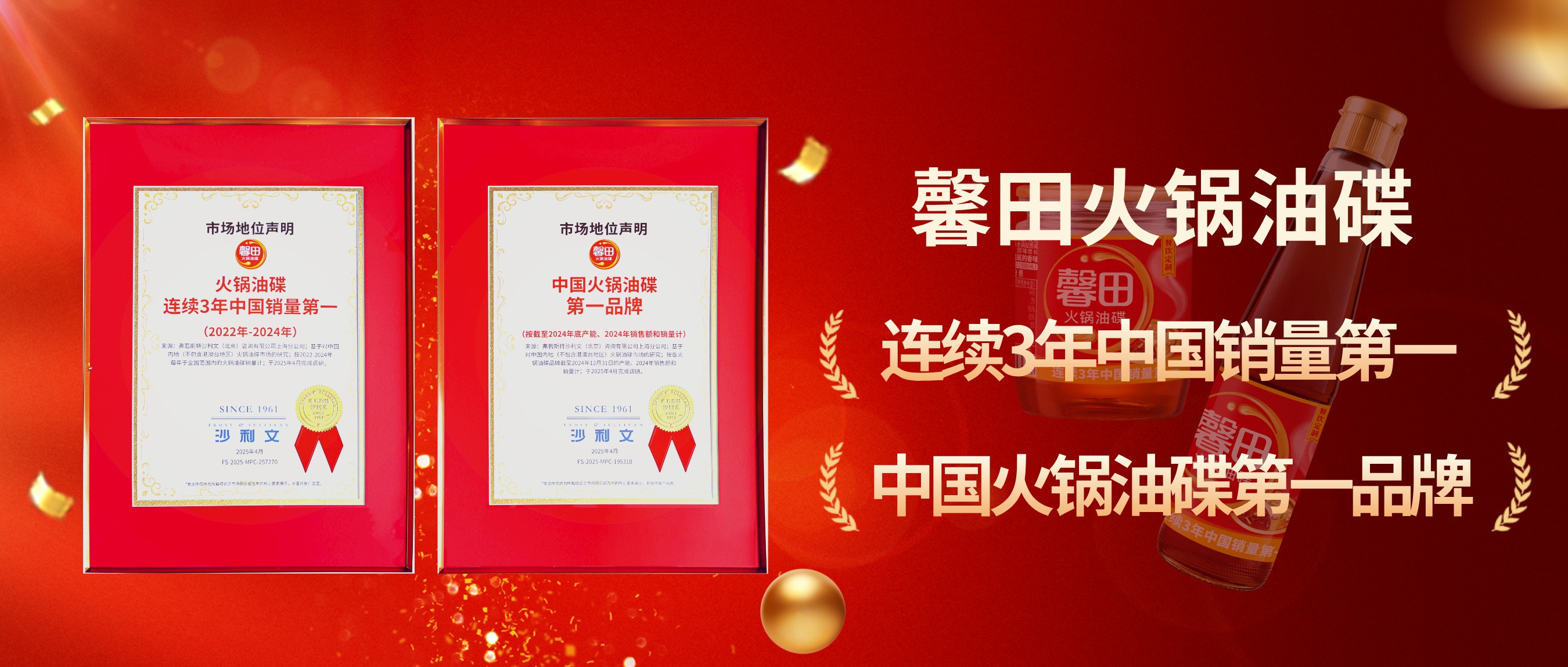 权威认证!馨田火锅油碟荣获“连续三年中国销量第一”“中国火锅