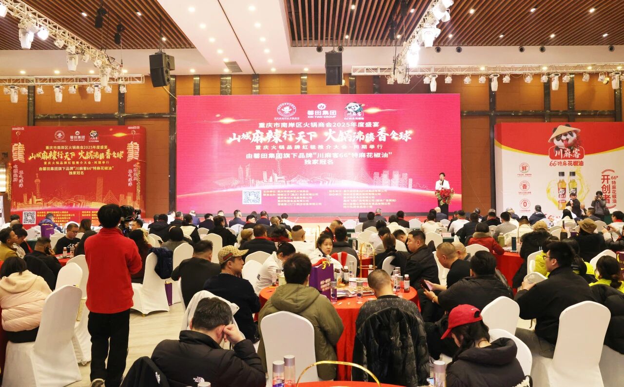 山城麻辣行天下 火锅沸腾香全球2025年度盛宴暨“川麻客66特麻花椒油”重庆火锅品牌交流推介会馨田火锅油碟,赞8新年伊始,万象更新。1月4日,以“山城麻辣行天下 火锅沸腾香全球”为主题的重庆市南岸区火锅商会2025年度盛宴暨“川麻客66特麻花椒油”重